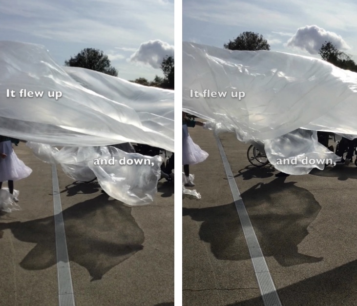 With the whole school at Heron Academy – all young people and staff – between September 2023 and January 2024 I co-created a film about a cloud that comes to visit the school. The cloud floats up and down, around and around, until… we are in the cloud. https://katherinesmithart.co.uk/collaborative-actions/